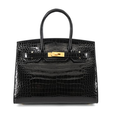 Hermes Birkin 稀有鱷魚皮金釦手提鉑金包-25cm(U刻/89黑)