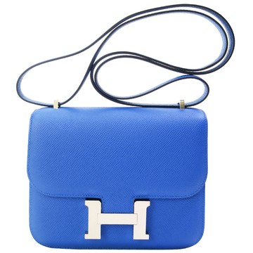 Hermes 愛馬仕 Constance 18CM I7 Epsom C刻 斜背包(馬賽克磁磚藍/銀釦)