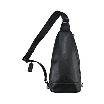 COACH黑色荔枝紋皮革直式單肩胸背斜後背男包