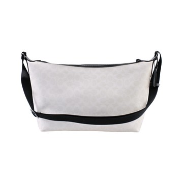 COACH碳黑C Logo黑邊真皮直式方型單肩胸背斜後背男包