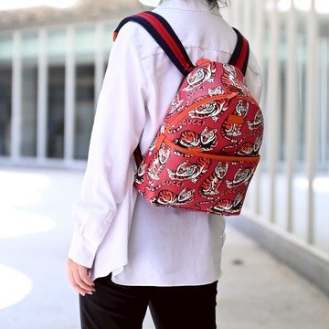 GUCCI 271327 Kids 老虎印花休閒雙肩後背包.紅/橘邊