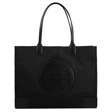 TORY BURCH 88237 滿版圓點花紋尼龍大容量肩背托特包.黑