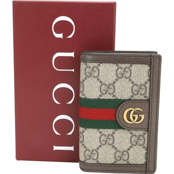 點我下載GUCCI 古馳 Ophidia GG 綠紅綠織帶老花直式卡片夾(烏木色)