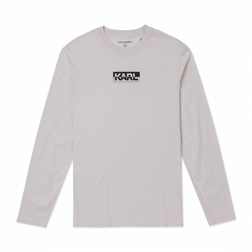 KARL LAGERFELD 老佛爺 熱銷印刷文字圖案長袖T恤-杏色
