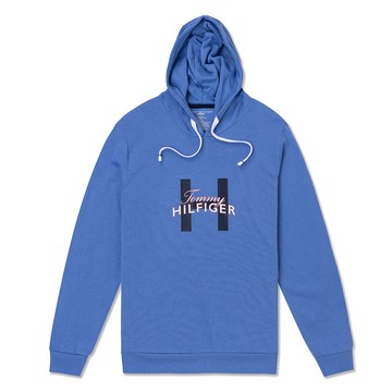 TOMMY 熱銷印刷大H文字圖案連帽T恤-藍色