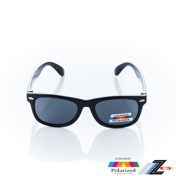 Z-POLS 兒童專用經典質感黑帥氣鉚釘設計彈性材質 Polarized寶麗來偏光太陽眼鏡(抗紫外線UV400)