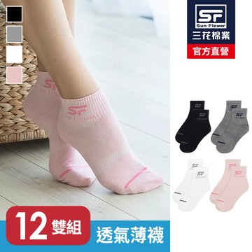 三花1/2男女適用休閒襪.薄款.襪子.薄襪(12雙)