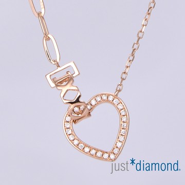 點我下載【Just Diamond】18K玫瑰金 心相戀 鑽石項鍊