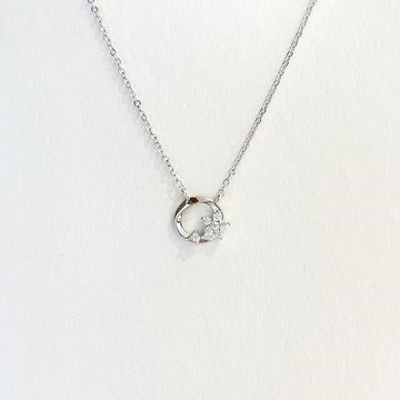RJ New York 單鑽四葉草鏤空幾何雙圈鎖骨項鍊(銀色)