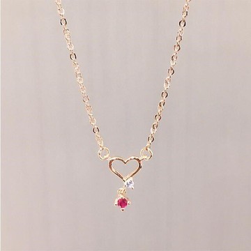Sadie 愛心水鑽雙色雙圈項鍊 JF04357998