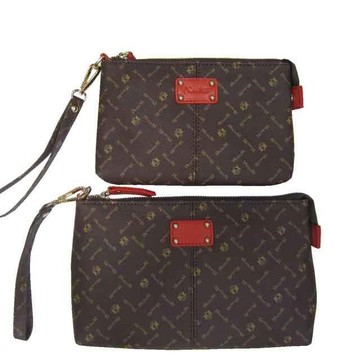 18NINO81 化妝包中容量主袋內二隔層手拿包分類袋進口防水防刮皮革