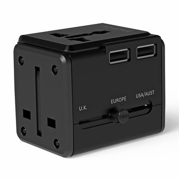 好米 多國旅行充電器 USB接口 + Type-C接口 黑色 1個 55mm
