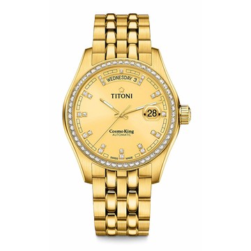 點我下載【TITONI瑞士梅花錶】 宇宙系列 金色錶盤/不鏽鋼鍊帶-40mm(797 G-DB-306)