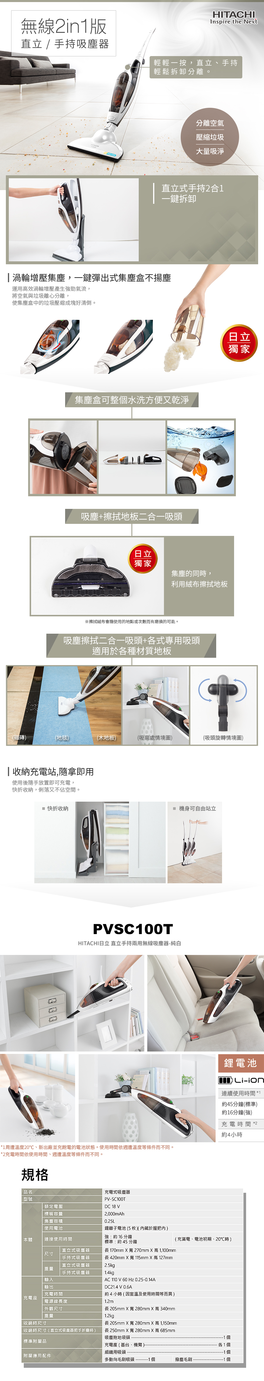 立刻下載日立HITACHI無線2in1直立/手持吸塵器(PVSC100T)