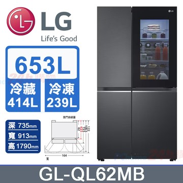 LG樂金653L InstaView™敲敲看門中門冰箱GL-QL62MB(夜墨黑)