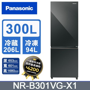 Panasonic國際牌 300公升雙門冰箱NR-B301VG-X1(鑽石黑)