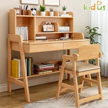 【kidus】100公分實木兒童升降書桌椅組附書架 OT6100Y+OA200 (成長書桌椅 升降桌椅 兒童桌椅)