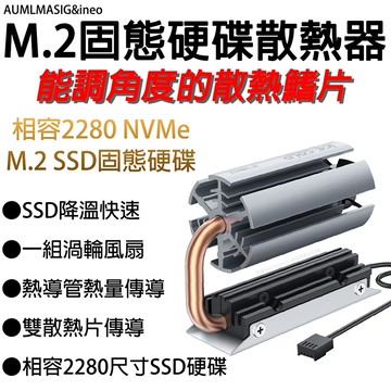 AUMLMASIG INEO M.2 M.2 SSD 固態硬碟渦輪風扇熱導管圓管散熱器 相容2280 NVMe M.2固態硬碟