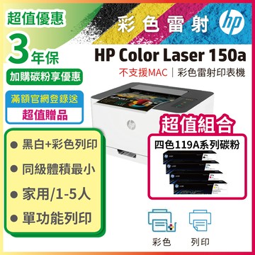 HP Color Laser 150a / 150 A 彩色雷射印表機 + 1組 119A 四色(CMYK)碳粉匣