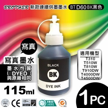 BROTHER BTD60BK / BTD60 相容墨水(黑色/DYED)【適用】T310/T510W/T810W/T910DW/T4000/T4500DW