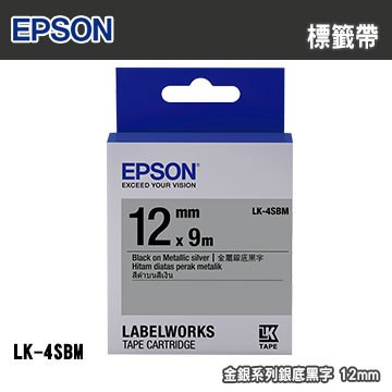 EPSON LK-4SBM S654421 標籤帶(金銀系列)銀底黑字12mm 公司貨