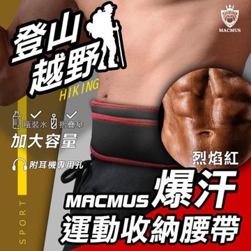 【MACMUS】大容量登山健走慢跑爆汗運動腰帶|紅色|大尺寸手機隨身腰包|加速腹部流汗