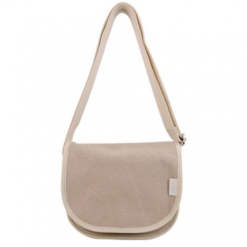 agnes b.文青風棉質翻蓋斜背包(小/淺卡其)