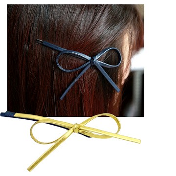 Charme 韓國流行 皮革蝴蝶結造型一字夾 金色