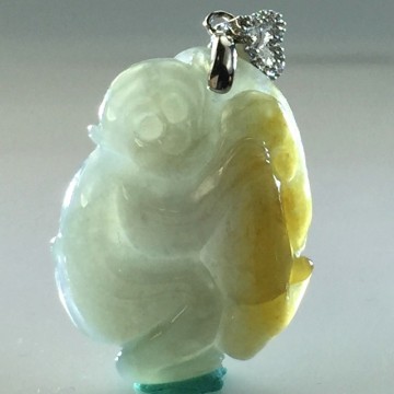 【森茂珠寶】緬甸天然翡翠A貨 冰種蜜糖黃福在眼前墜子 F1821