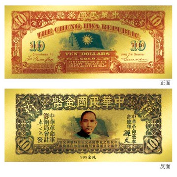 黃金鈔票 辛亥革命時期鈔票 中華民國壹十圓金幣券純金紀念鈔票