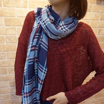 尾州織蘇格蘭格紋羊毛紗大披肩 海軍藍 圍巾