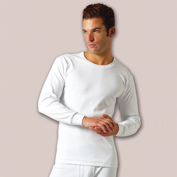 YG-排汗保暖圓領男長袖衫-白