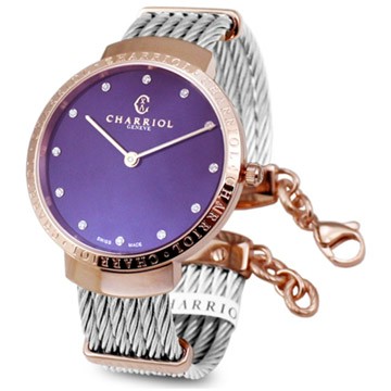 CHARRIOL 夏利豪Slim 經典玫瑰金鍊帶款(ST34CP.560.024)x紫x34mm