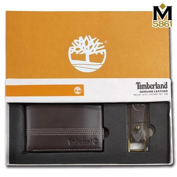 【Timberland】男皮夾 短夾 簡式卡夾+鑰匙圈套組 品牌盒裝+原廠提袋棕黑色