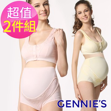 Gennies奇妮 2件組*活動式棉質蕾絲托腹褲(黃/粉GJ07)