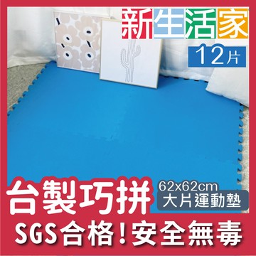 【新生活家】EVA運動安全地墊-藍色62x62x1.3cm 12入