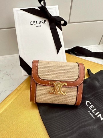 CELINE 賽琳 Triomphe Compact 標誌印花 短款 零錢包 皮夾 卡夾 短夾 黃褐色 10K622CQH.04LU