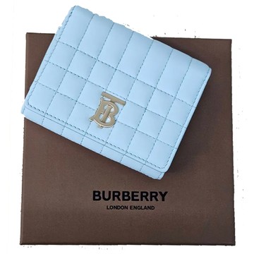 BURBERRY 巴寶莉Lola 衍縫羔羊皮折疊短夾-淡藍色