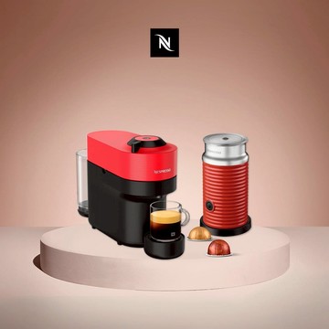 【Nespresso】臻選厚萃 Vertuo POP 膠囊咖啡機 丁香紫+A3紅色奶泡機組合