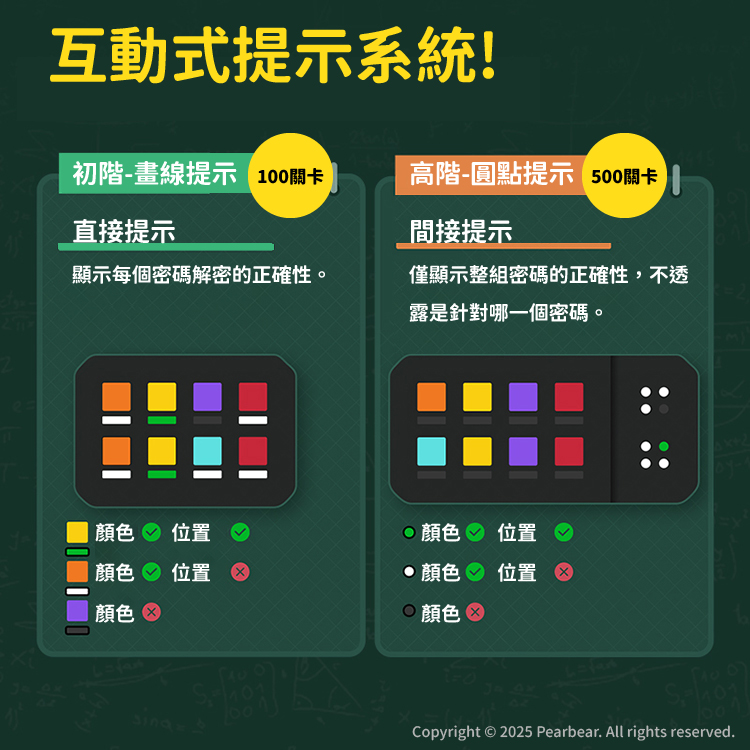 ・雙重提示功能,循序漸進,幫助玩家逐步解碼,增強自信心