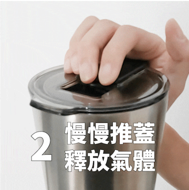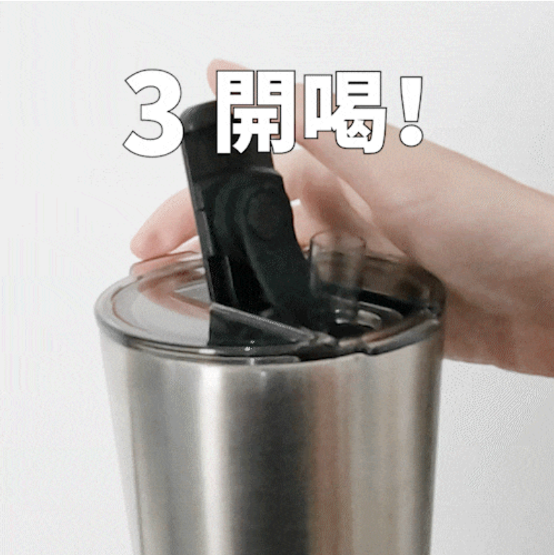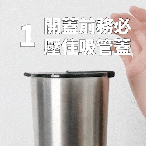 開蓋時務必壓著吸管蓋再慢慢推開 ( 下圖為建議手勢,只要有壓著,任何手勢都OK )