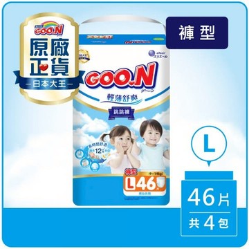 大王GOO.N紙尿布國際版輕薄舒爽系列_褲型L(46片X4串)