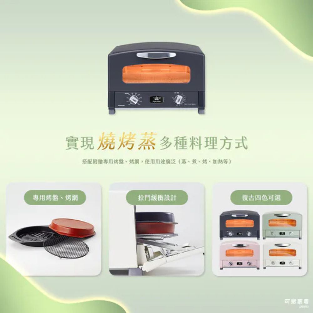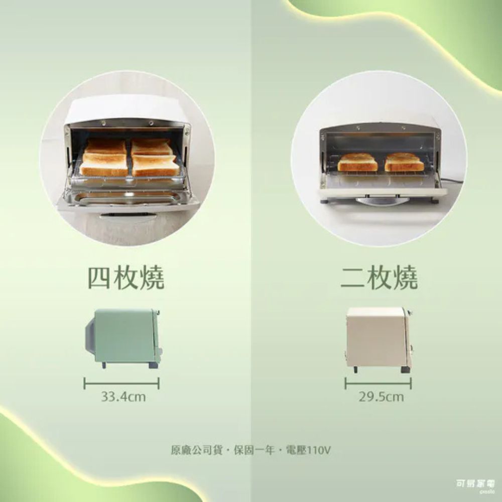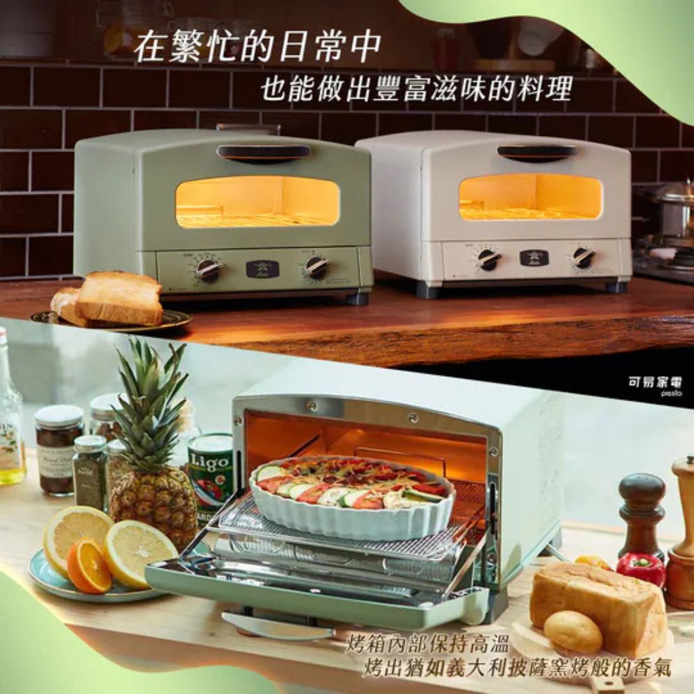 日本千石阿拉丁 最新專利0.2秒瞬熱4枚焼復古多用途烤箱 AET-G13TG(綠)