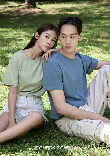 情侶系列~高含棉圓領袖身棋盤格長袖上衣(男