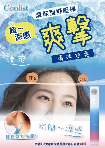 輕巧滾珠設計,更方便使用,適合外出旅遊,開車通勤,讀書時刻,一抹提神舒壓,Coolist,微香好心情滾珠舒壓棒