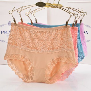 推薦出口日本刺繡蕾絲牛奶絲透氣彈力女士三角中高腰內褲有大碼