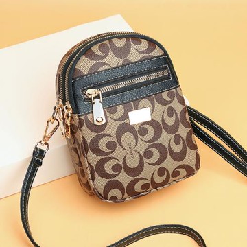 2024新款軟皮印花小方包馬卡龍拉鏈手機包時尚潮單肩包百搭斜挎包