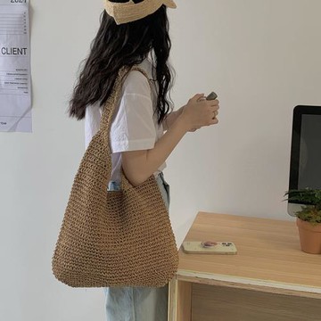 法式復古草編包 新款大容量休閑簡約單肩編織包女海邊度假沙灘包