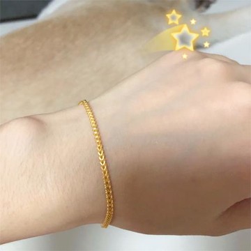 萬能百搭氣質大方極簡側身鏈古巴鏈手鏈閃閃素金18K包金淺金潮流