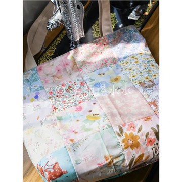 原創手工自制森系花朵棉麻拼布雙面拼布單肩包